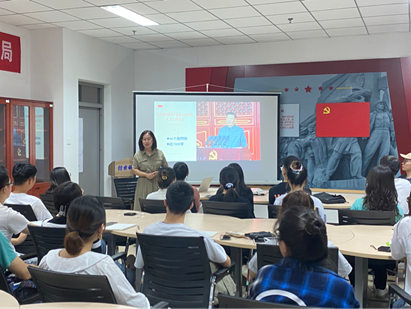 为深入学习贯彻习近平总书记在庆祝中国共产党成立100周年大会上的重要讲话精神和习近平总书记对青年的寄语,引领广大青年感悟思想伟力、凝聚奋进力量、牢记初心使命,9月14日晚19:00在天仪楼八楼党员活动室,学院党总支书记贾甚杰为50名学生党员和学生干部讲了《学习习近平总书记系列重要讲话精神,以实际行动争做时代新人》专题党课。