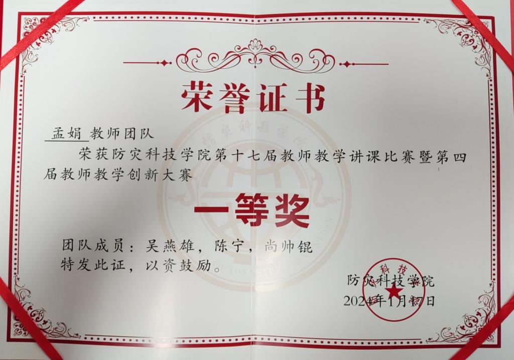 近日,澳门电子pg游戏官网在学校第十七届教师教学讲课比赛暨第四届教师教学创新大赛中取得了优异成绩,其中课程思政组别孟娟老师团队获得一等奖,副高组别于瑞红老师团队获得一等奖,正高组别贺秀玲老师团队获得二等奖。