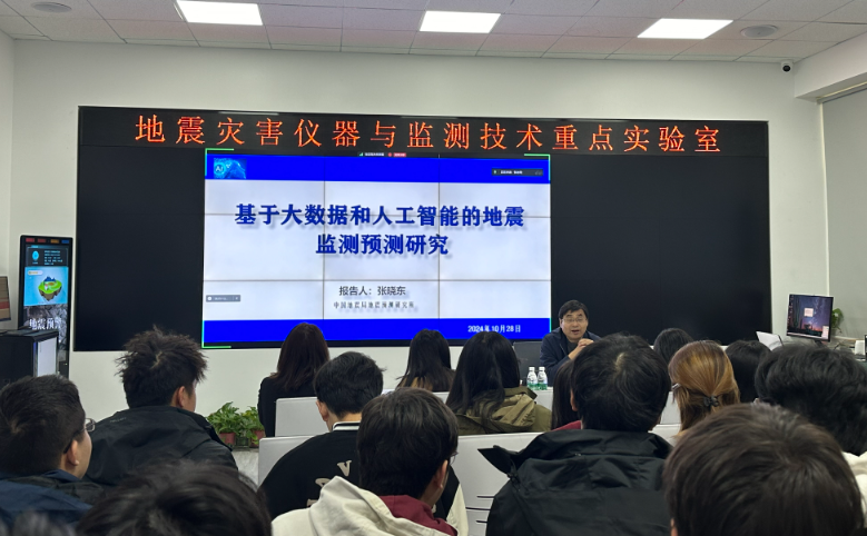 10月28日上午,中国地震局地震预测研究所张晓东研究员应邀作题为“基于大数据和人工智能的地震监测预测研究”的学术报告,该报告是澳门电子pg游戏官网举办的“河北省地震灾害仪器与监测技术重点实验室2024系列学术报告”中的第9场。报告在地震监测预警综合服务基地地震监测四网孪生实验室举行,会议由电控学院院长蔡建羡主持,学校部分师生聆听了报告。