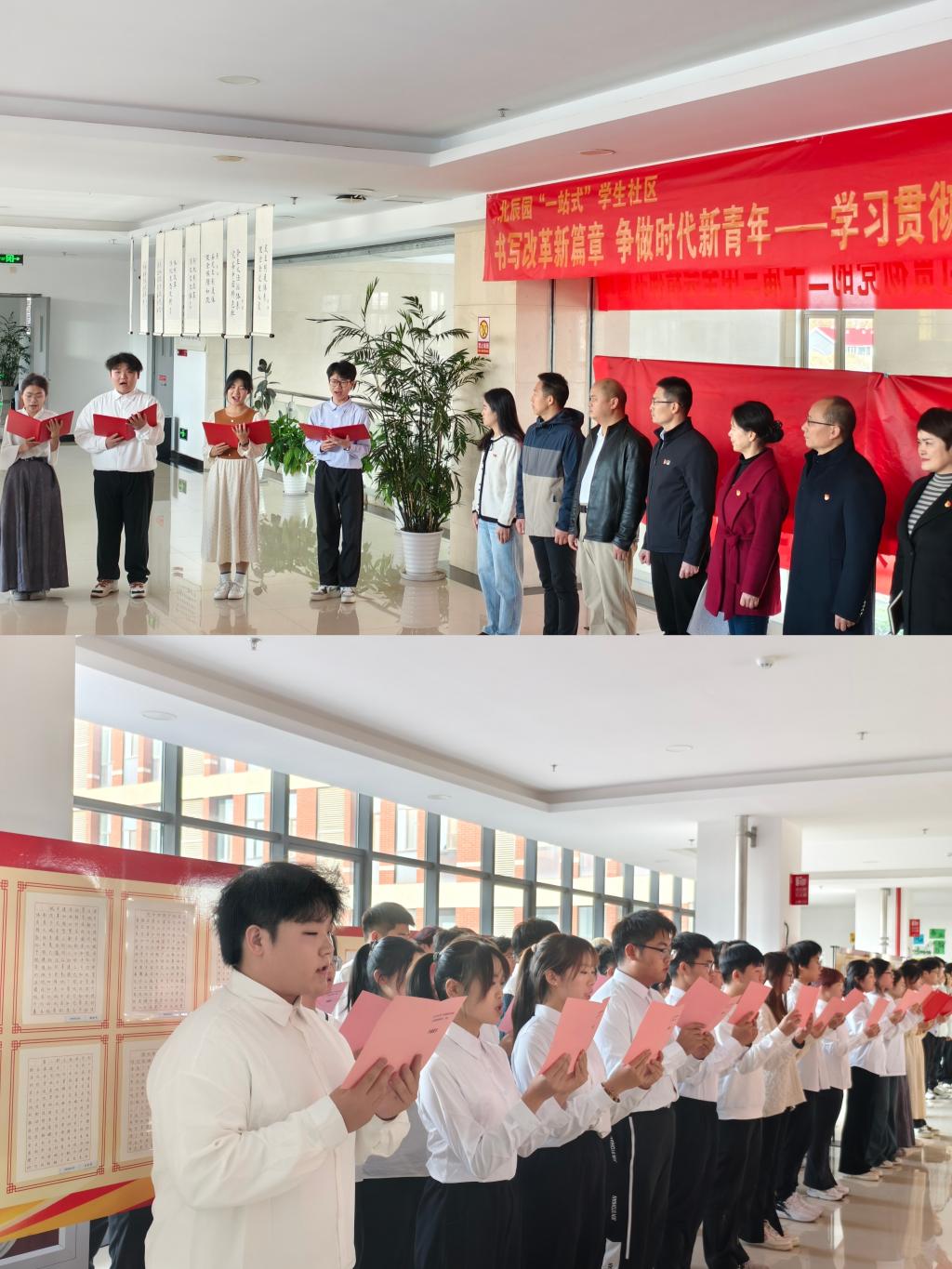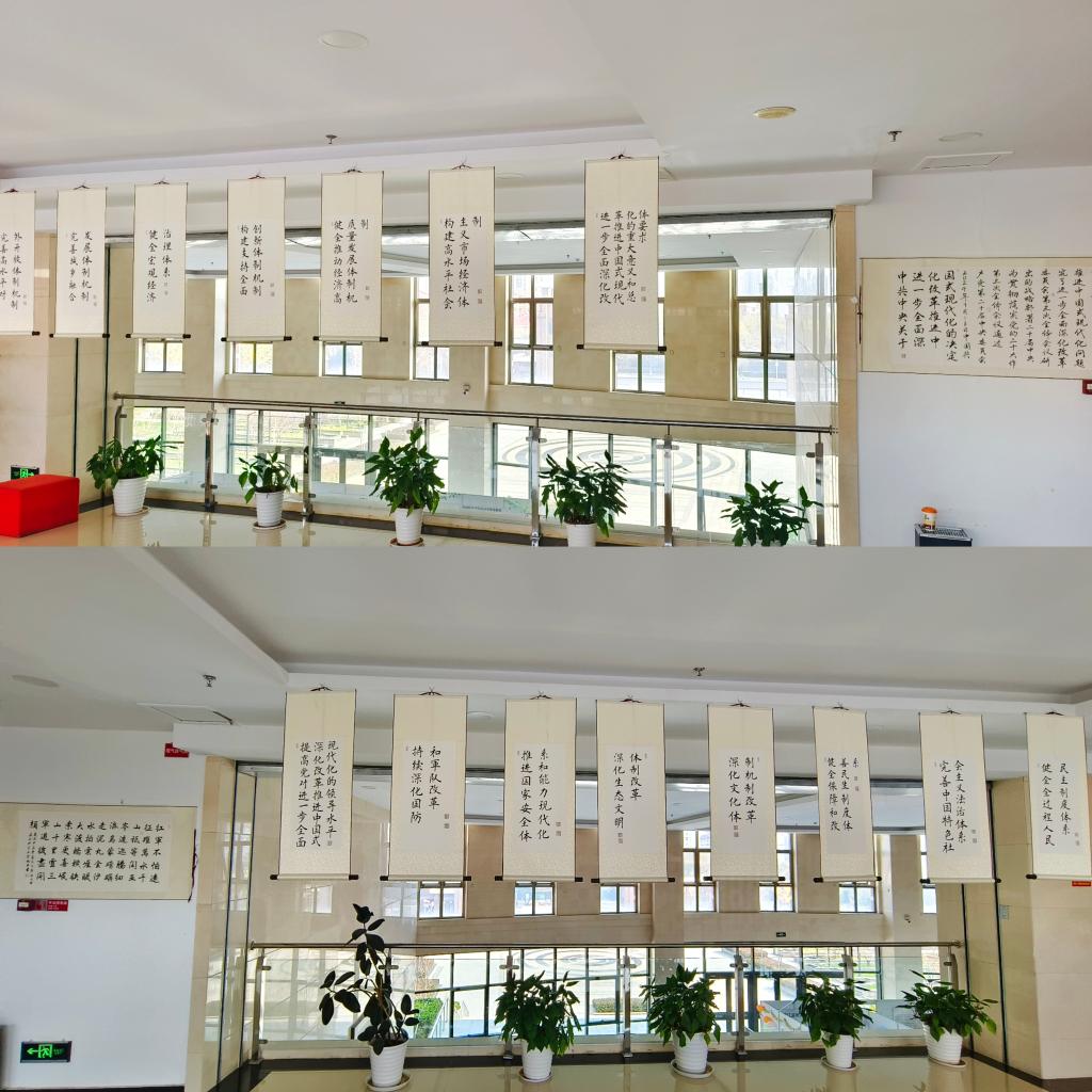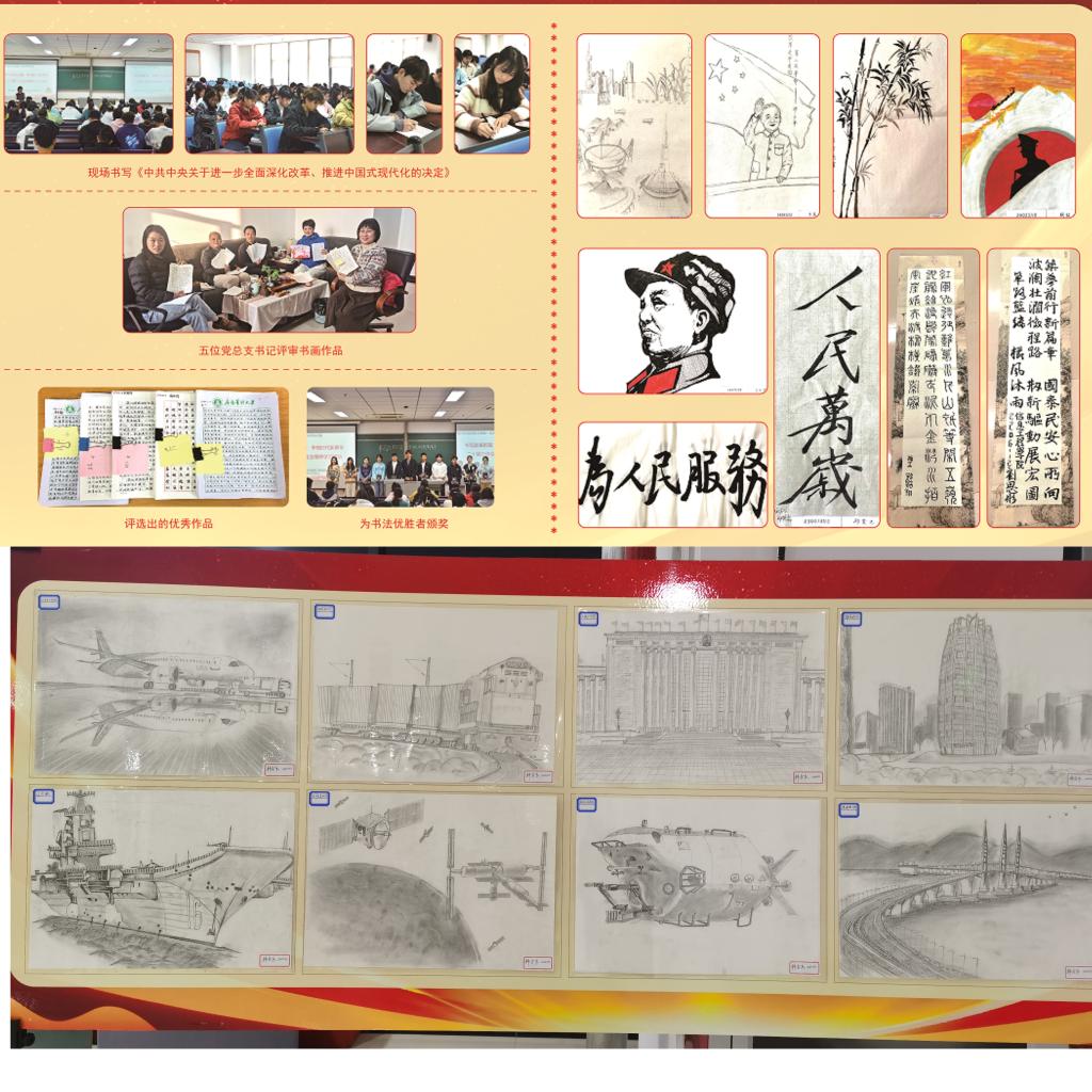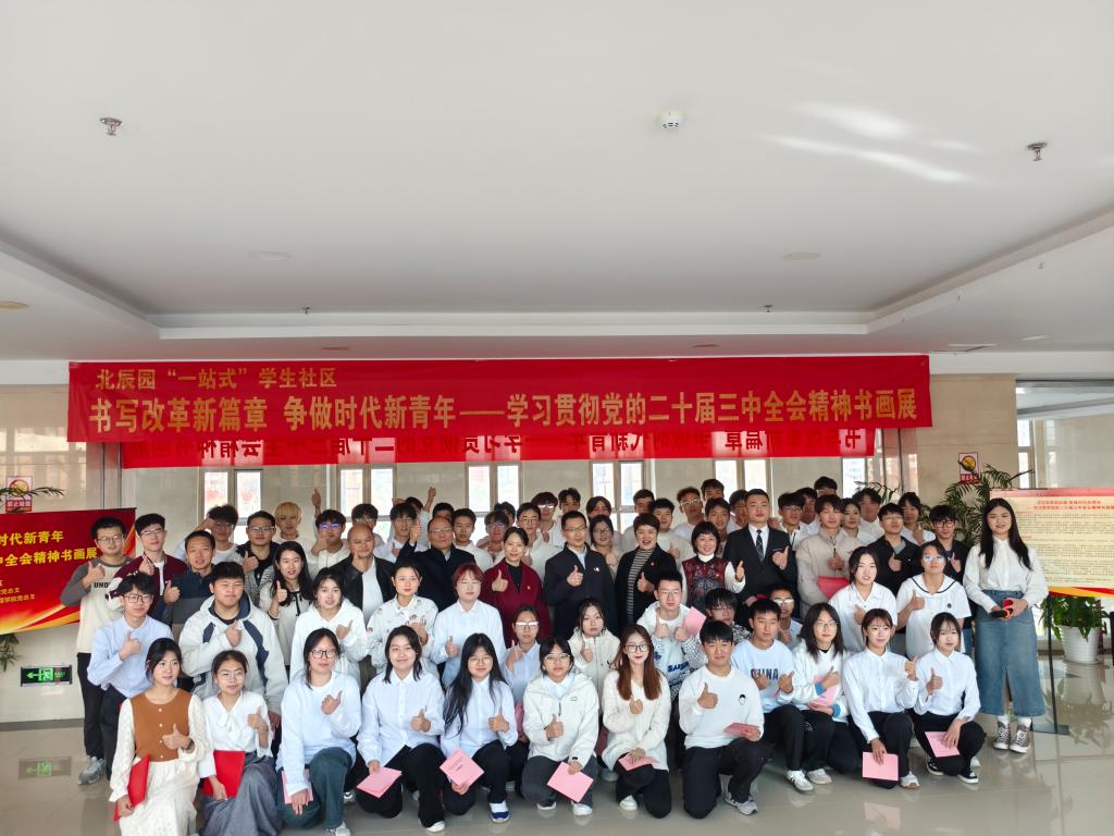 11月18日,学校地球科学学院、生态环境学院、地质工程学院、澳门电子pg游戏官网、信息工程学院五个学院党总支结合北辰园“一站式”学生社区建设,联合举办“书写改革新篇章 争做时代新青年”——学习贯彻党的二十届三中全会精神书画展。