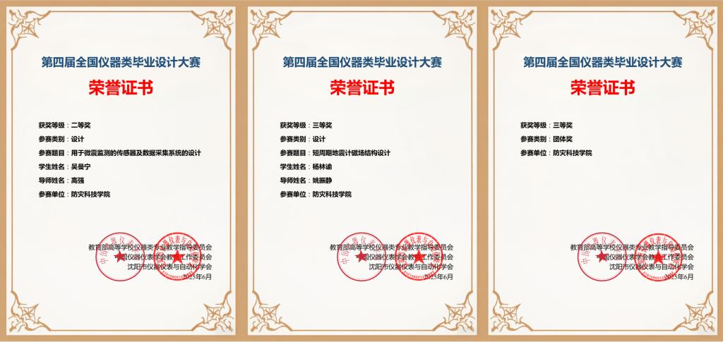 第四届全国仪器类毕业设计大赛近日在重庆大学成功举办。澳门电子测控技术与仪器专业选派7名学生参赛,取得优异成绩。其中,高强老师指导的吴曼宁同学《动圈式微震传感器设计》获国家级二等奖,姚振静老师指导的杨林谕同学《磁电式地震计的磁场结构设计》获国家级三等奖,澳门电子测控技术与仪器专业团队荣获"全国三等奖"团体奖项。