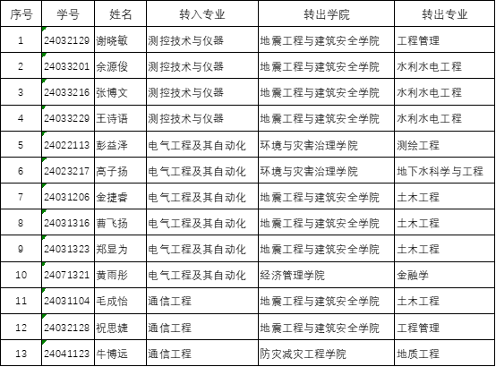 依据《应急管理大学教务处筹备组文件》(教务处筹〔2025〕31号)、《澳门电子pg游戏官网本科生转专业管理办法》(防科教〔2019〕32号)等相关规定,经学生本人提出申请、转入学院对学生成绩进行审核、面试等环节予以综合评定,结合学院党政联席会讨论决议,拟批准以下学生的转专业申请,现予以公示。