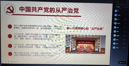 洪校长从为什么要“全面从严治党”;“全面从严治党”的历史沿革;“全面从严治党”治什么;“全面从严治党”如何做四个方面讲述了我党“全面从严治党”原因、历史和做法。首先洪校长从理论方面阐述了“全面从严治党”是党生存、发展的必由之路,接着从世界形势的变化、国家形势的要求、党在新形势下的需要几个方面论述了“全面从严治党”的必要性。接下来回顾了党中央新一代领导核心“从严治党”的决心,并从思想、组织、作风、党纪、监督等方面建立健全了各种保障机制,使得“全面从严治党”成为党建工作的一种常态,保障党的纯洁性和先进性。