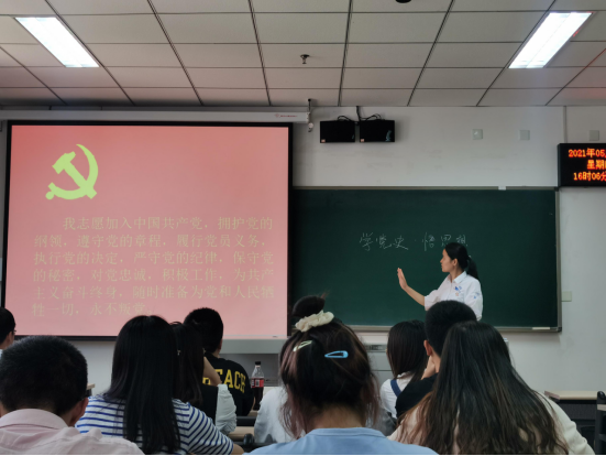 电气专业学生党支部书记朱桃花讲述中国共产党党史,告诫党员要学党史,体悟里面蕴涵的思想。在学习党史过程中,学习革命先烈的英勇事迹和精神思想是作为我们党员同志必备的一课。