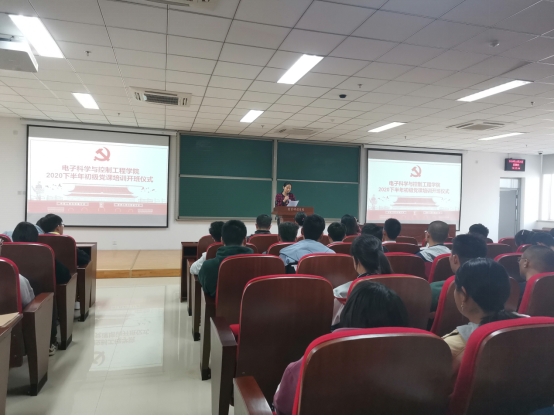 2020年10月29日下午14:00,澳门电子pg游戏官网在北校天仪楼408教室举行了2020年下半年初级党课培训开班仪式。参加人员有党总支书记贾甚杰、各专业学生党支部书记、各部门学生党员及全体初级党课培训班学员,仪式由实践部部长乔欣同志主持。