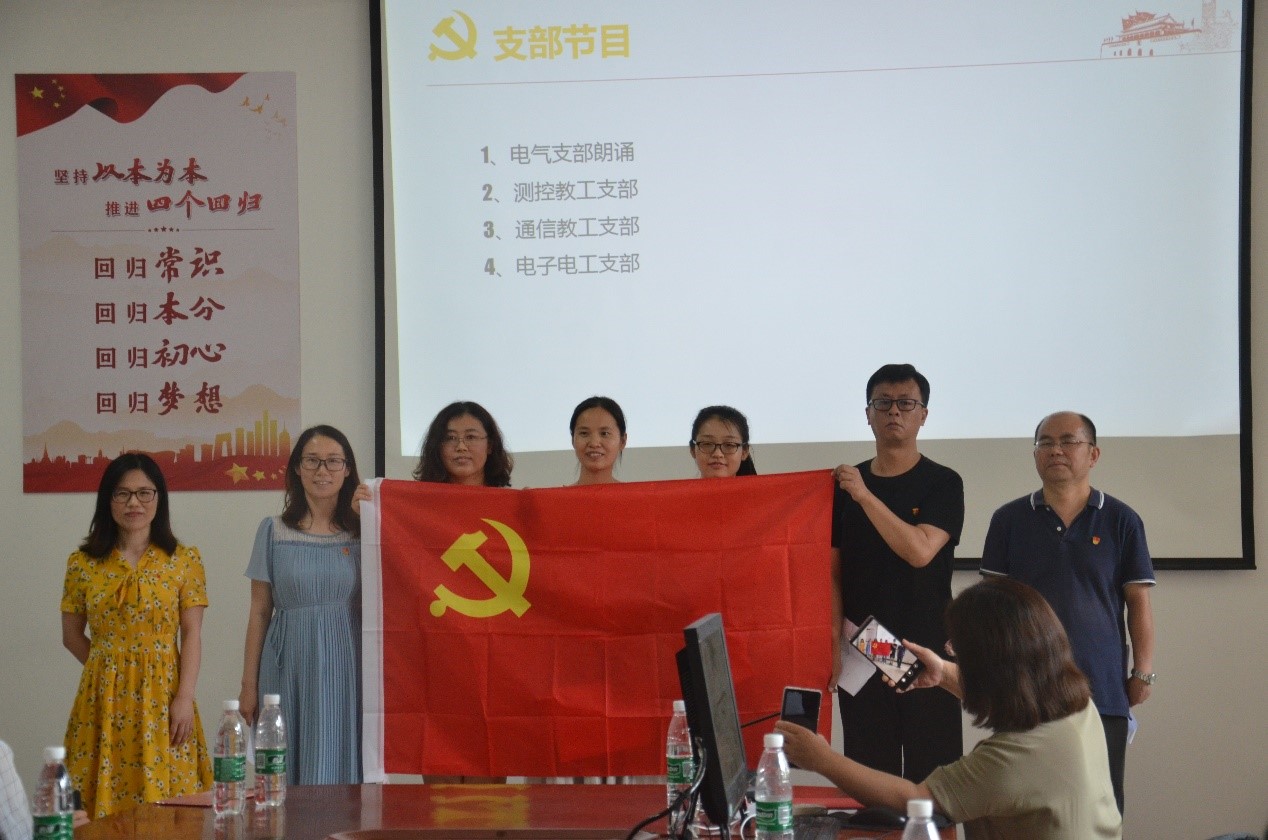 接下来四个教研室党支部通过朗诵、合唱等形式为党的百年华诞献上节日的祝福,祝福伟大的党青春永驻,伟大的祖国繁荣富强,伟大的人民幸福安康。