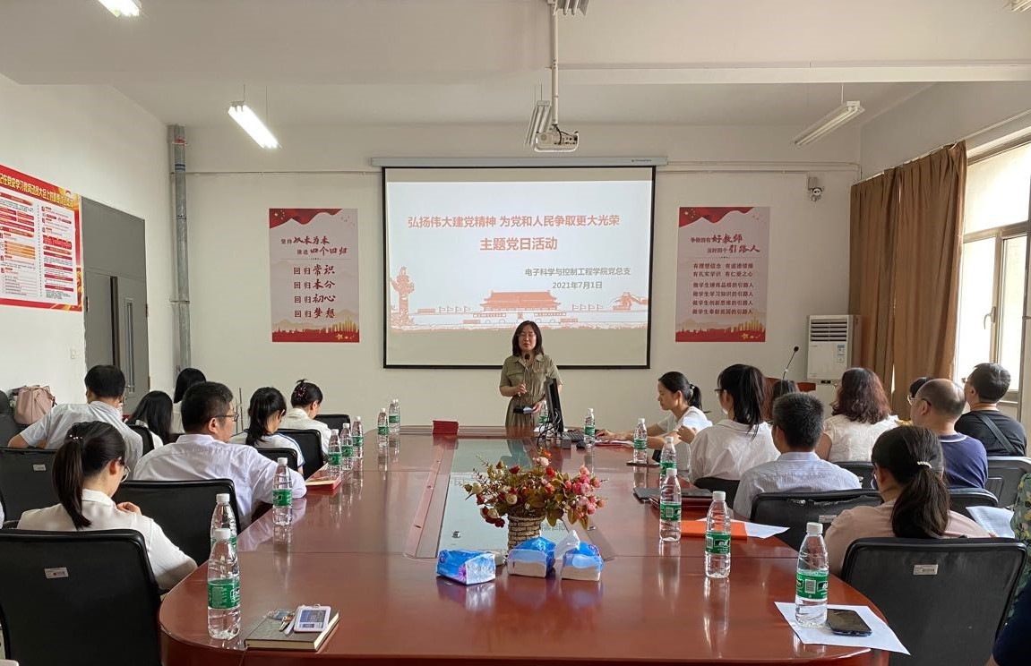 为热烈庆祝中国共产党百年华诞,7月1日下午,澳门电子pg游戏官网党总支全体教师党员在长庚楼420党员活动室举行“弘扬伟大建党精神 为党和人民争取更大光荣”主题党日活动,学校副校长洪利教授出席活动,党日活动由党总支书记贾甚杰主持。