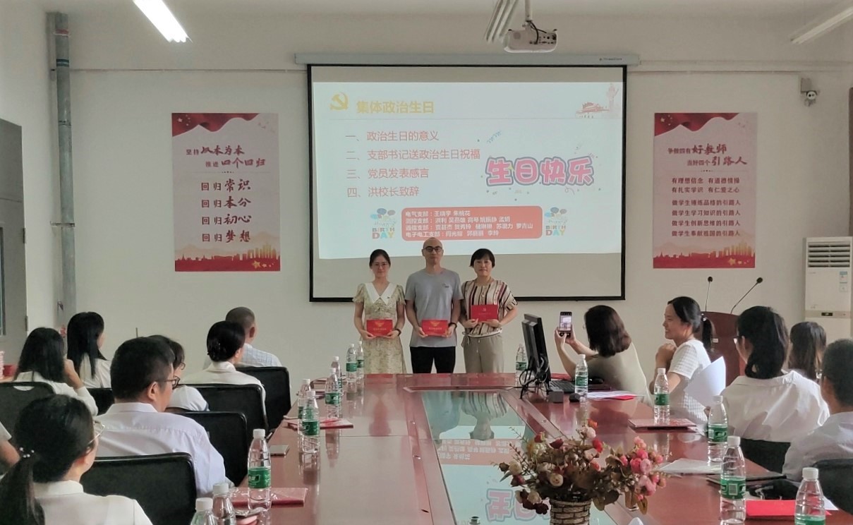 接着,全体党员为上半年入党的15名同志集体庆祝“政治生日”,支部书记为党员依次送上政治生日祝福,颁发“政治生日贺卡”,将党组织真诚的祝福和浓浓的关爱传递到每名党员心中。副校长洪利鼓励全体党员要铭记入党初心使命,再接再厉奋发作为,强化政治意识和大局意识,为应急管理大学筹建贡献智慧和力量。