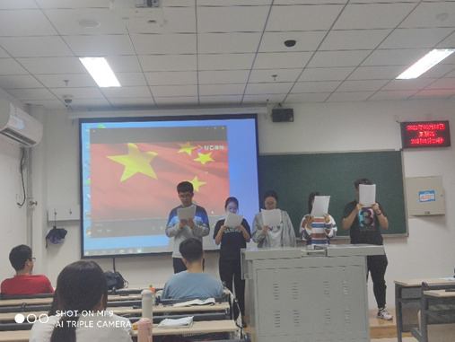 本次活动内容包括党员给新生讲党课、新生“讲红色故事、唱红色歌曲、朗诵红色诗歌”、党员与新生交流解答问题三个环节。党员代表为新生讲党课,带领新生了解中国共产党百年奋斗的光辉历程与波澜壮阔的发展历史,并向新生同学介绍了学习党史的意义,带领新生一起学习了习近平总书记“七一”重要讲话,针对新生关心的入党问题,学生党员介绍了学院党员发展工作的程序和条件等。大一新同学精心准备,分组表演唱红歌、诗朗诵、讲故事等节目,以嘹亮的歌声、整齐的口号、声情并茂的朗诵和讲解,表达了对党的热爱、对美好生活的追求、对青春奋斗的颂扬。