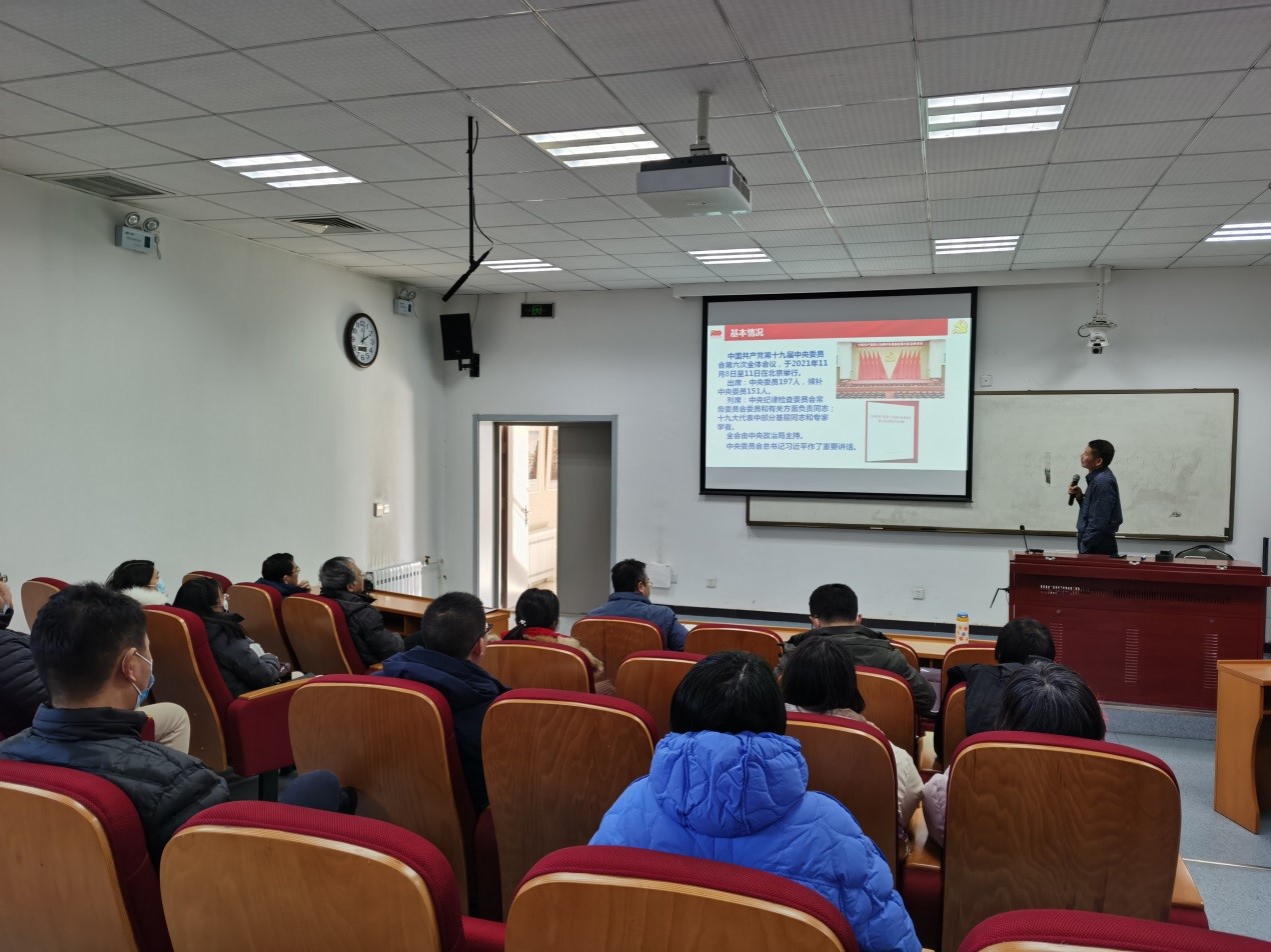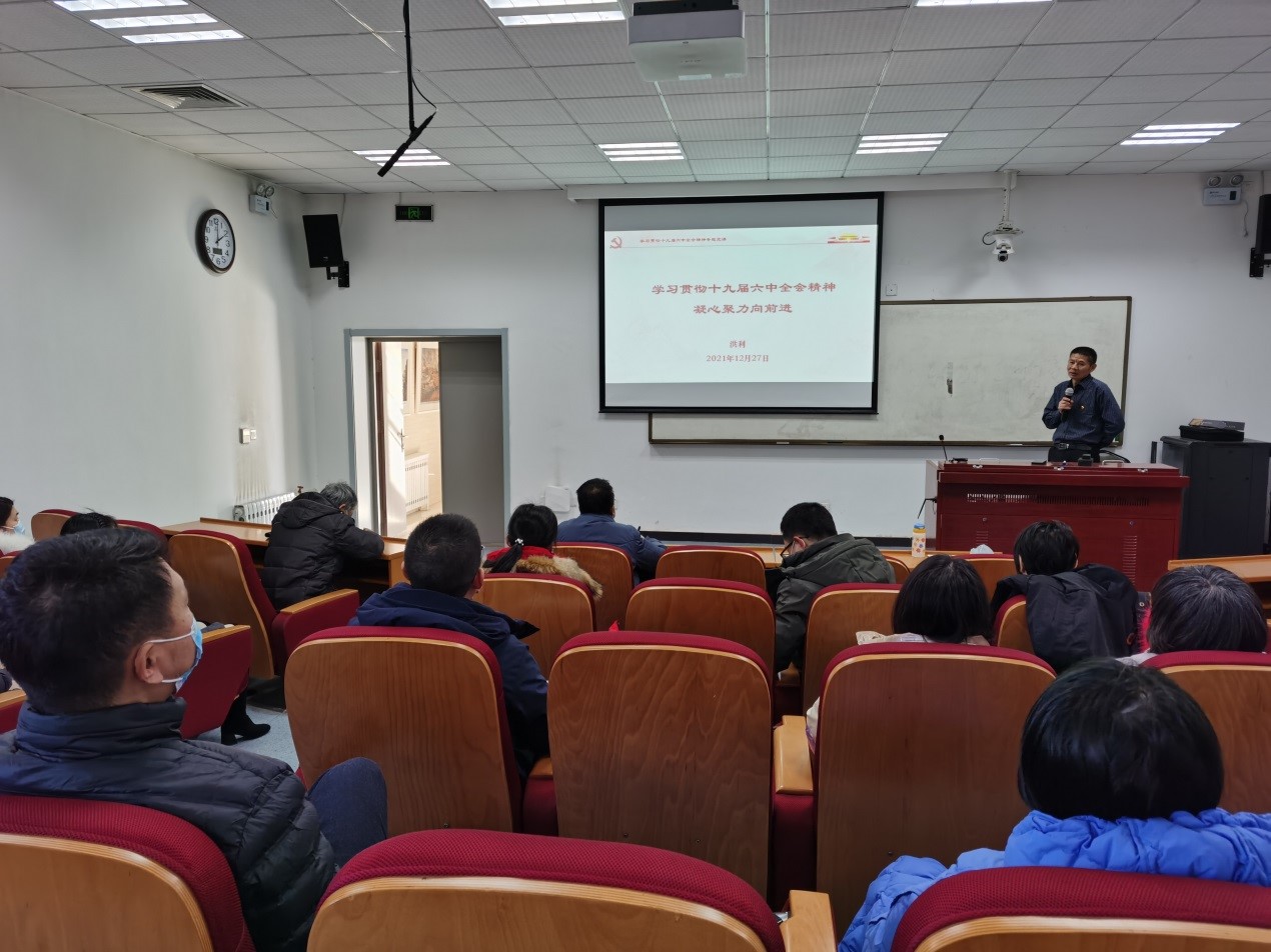 12月29日下午,学校副校长洪利为澳门电子pg游戏官网、地质工程学院做了学习贯彻党的十九届六中全会精神专题党课,两学院全体教师党员采用线上线下方式参加。