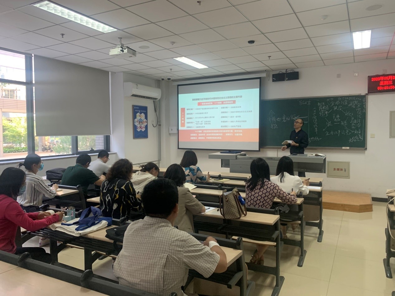 5月24日上午8:30-9:30在天仪楼112教室,学院党总支理论学习中心组开展扩大学习会,以《习近平新时代中国特色社会主义思想学习纲要》为读本开展集体学习。党总支委员、党支部书记、部分党员参加学习,党总支副书记阎光耀领学,为大家解读了“五位一体”与“四个全面”的内涵与联系,解读了“十个明确” “十四个坚持”的逻辑结构,为各支部进一步开展集体学习做了很好的辅导。