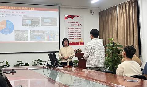 贾甚杰介绍入党流程和积极分子培训考核、党的发展对象培训考核的条件和要求,希望积极分子能在实际工作学习中高标准、严要求,不断充实、提高、完善自己。