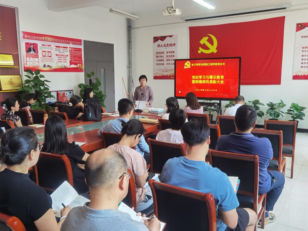 在建党103周年之际,为深入开展党纪学习教育与警示教育,进一步加强师德师风建设,促进“四强”党支部和“四好”党员的作用发挥,澳门电子pg游戏官网党总支于6月27日下午在长庚楼420召开党纪学习教育与警示教育暨师德师风表彰大会,学院领导班子及教工党员参加会议。会议由学院党总支书记贾甚杰主持。