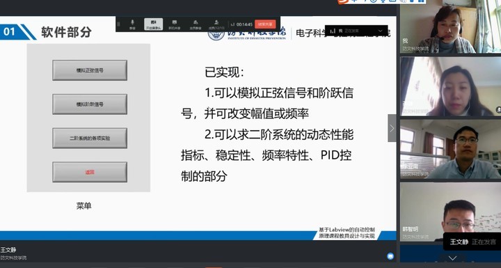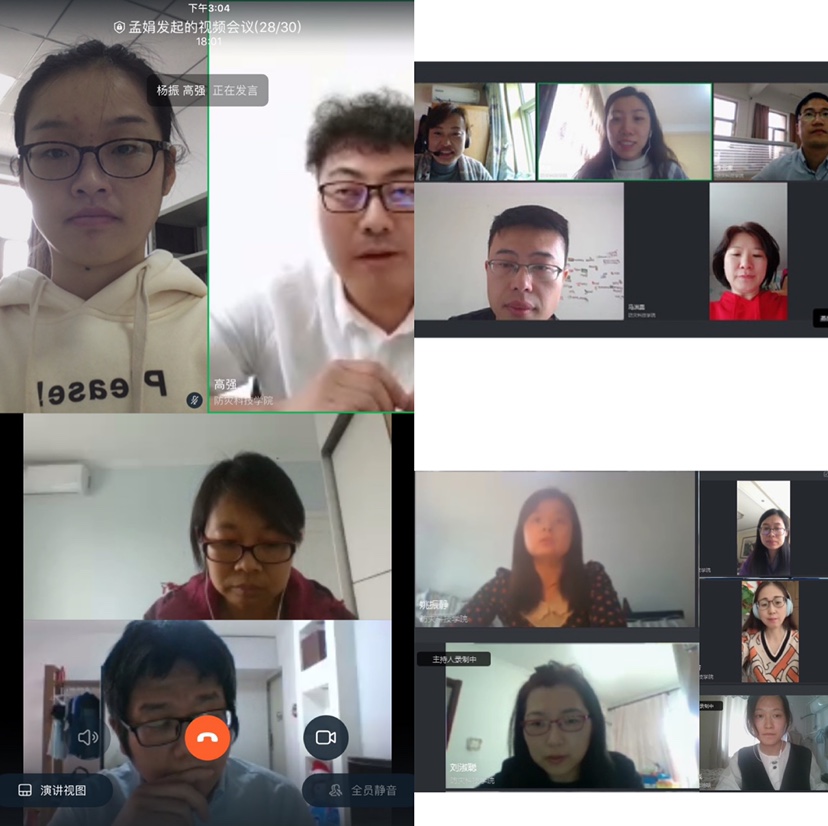 由于目前还处于疫情特殊时期,中期检查答辩采用钉钉会议远程进行,为了保证答辩过程顺利进行,前期各指导老师都组织学生进行了演练。专业99名同学和全体评委老师全部出席,分为三组,每组学生按照答辩顺序依次采用ppt进行汇报,进展顺利。