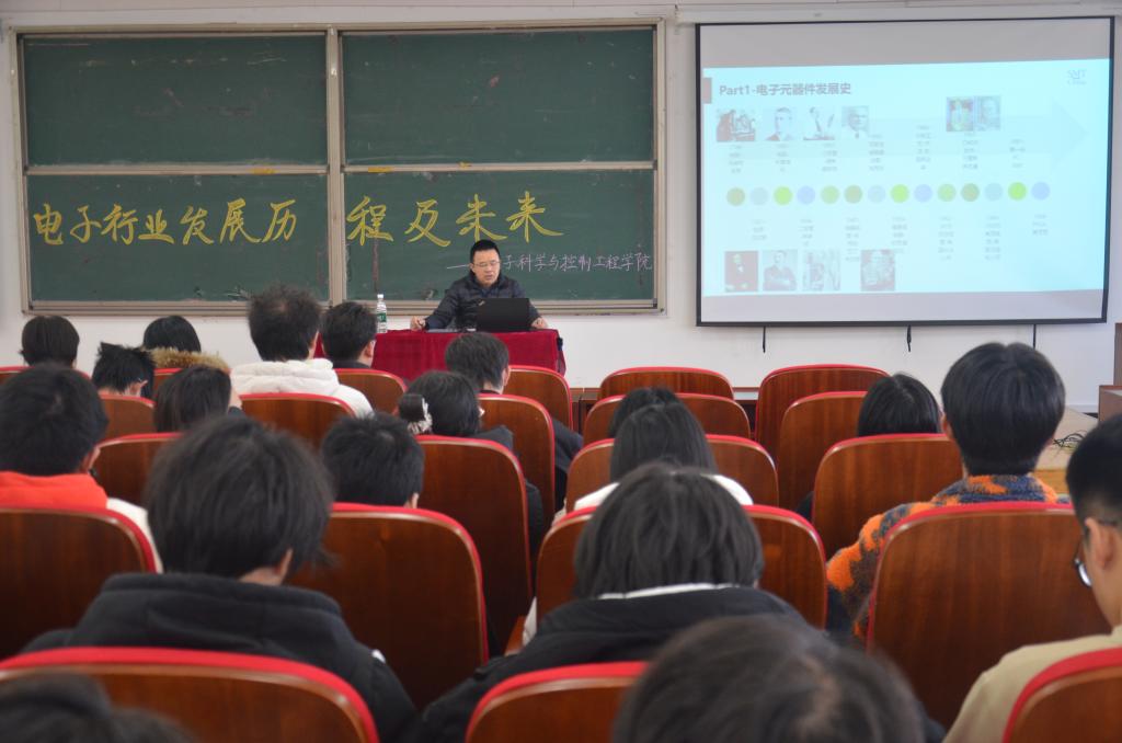 12月5日,受澳门电子pg游戏官网邀请,汉王制造有限公司SMT经理、高级工程师余风胜来校作题为“电子行业发展历程及未来”的学术报告,共有300余名师生到场聆听。