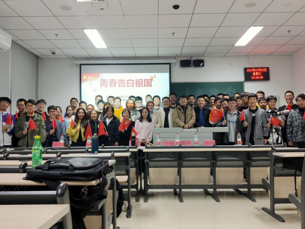 为了庆祝新中国成立70周年,澳门电子pg游戏官网190531班于2019年10月16日晚七点于澳门电子pg游戏官网天仪楼307教室举办了“青春告白祖国”的主题班会,来为祖国庆生。本次主题班会由190531班王俊添主持。