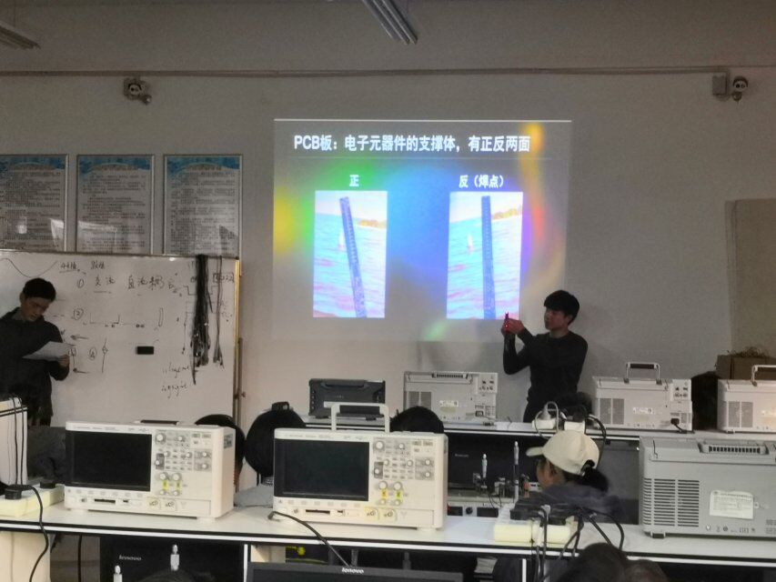 同学们带着工具箱陆陆续续来到306教室,焊接培训于下午2点半准时开始,首先由机器人协会干事俞焘对摇摇棒的制作、用电安全、焊接技巧以及一些电子元器件功能进行理论指导和示范讲解,对参加活动的同学进行帮助。讲解完成后干事们开始动手焊接,并由联盟各部门会长和机器人协会干事进行指导,让干事们体验到焊接的乐趣。最后同学们进行电路的焊接组装与调试,最终做出焊接的成品。整个培训过程中丰富多彩,培训结果卓有成效。