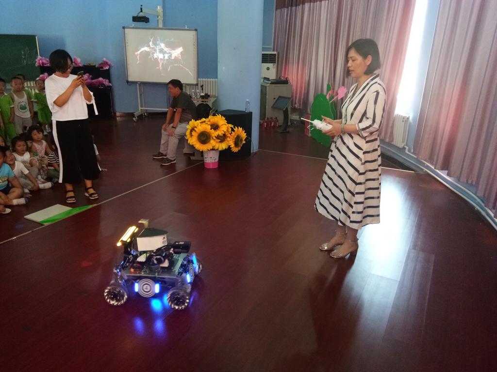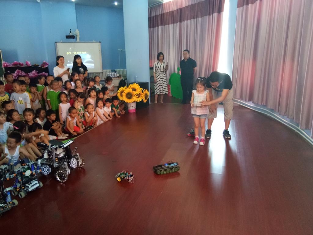 首先,由电子青年科技联盟成员为孩子们播放了实验室参赛的视频,更好的吸引了每位孩子,接下来,现场操作,依次展示格斗机器人、寻迹避障智能小车、思玄步兵和无人机飞行器。我们还邀请了老师和小朋友们亲自操作智能小车,进一步让孩子们接触科技作品;最后,在园长和老师的帮助下,各班分批进入现场,我们依次演示了每件作品.