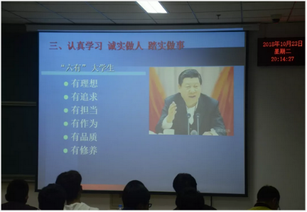 为培训入党积极分子,引导学生把握时机、塑造自我,澳门电子pg游戏官网党总支书记贾甚杰老师于2018年10月23日晚七点,在天仪楼210教室为同学们讲解了最后一堂初级党课。到场的人员有党总支书记贾甚杰老师、各专业党支部副书记及2018年入党积极分子。