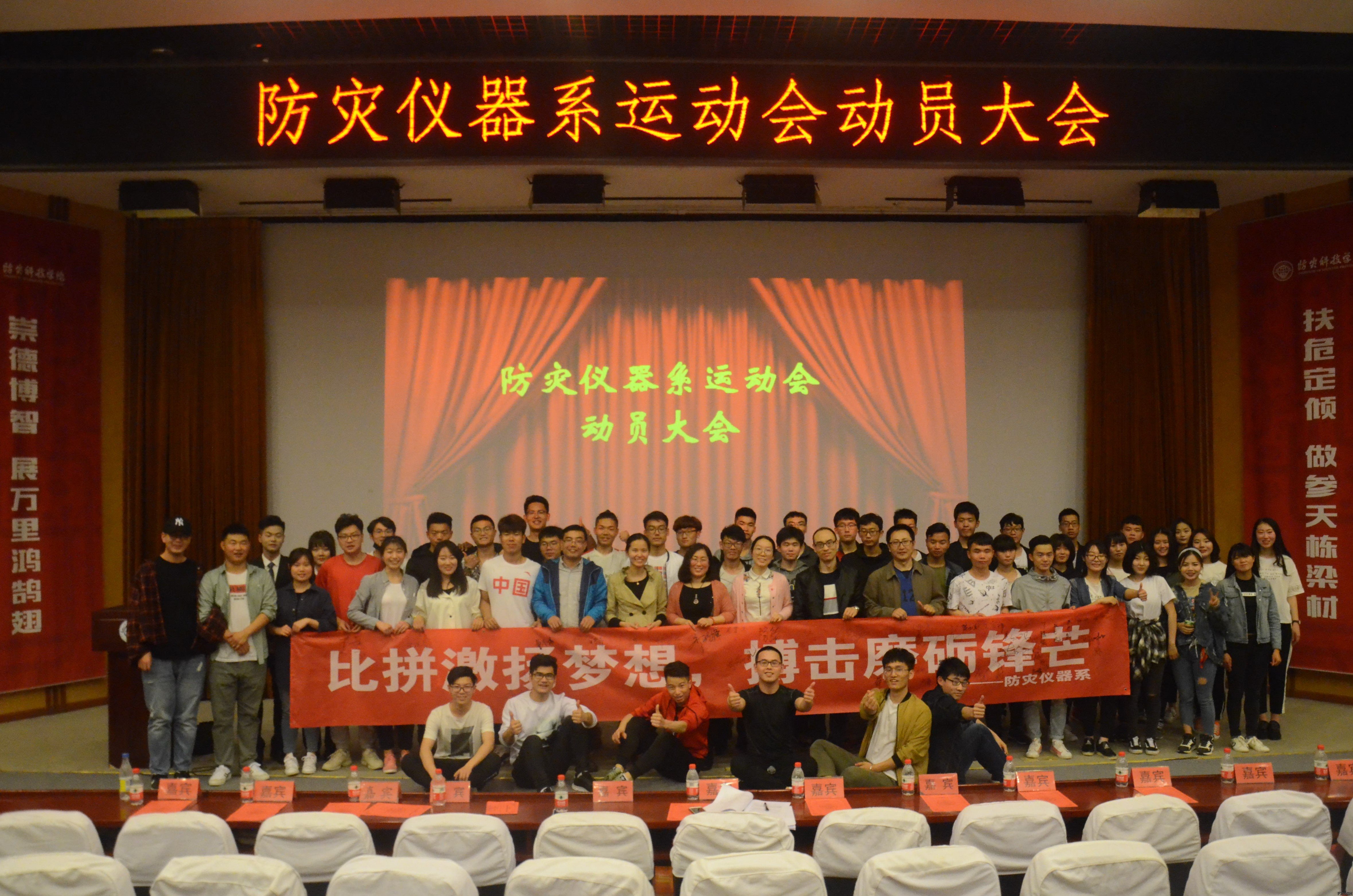 为表彰对防灾仪器系体育事业做出卓越贡献的运动健儿们,动员各组织各班级积极参加澳门电子pg游戏官网第三十一届校运会, 4月19日晚7点,我系于南校图书馆二楼报告厅举行防灾仪器系体坛风云人物表彰暨运动会动员大会。大会到场嘉宾有:我系党总支书记贾甚杰老师,团总支书记申世园老师,辅导员阎光耀、胡治国、朱桃花、郭越老师,我系2017级全体大一同学,大会表彰及获奖人员。