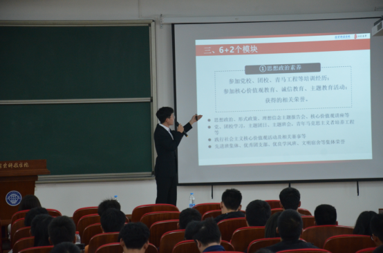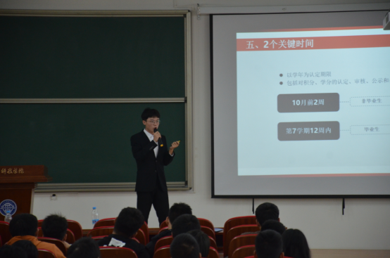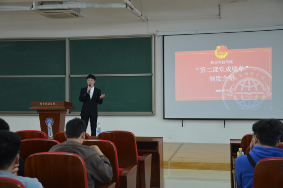 首先,学院“第二课堂”负责人张智涵结合《澳门电子pg游戏官网“第二课堂成绩单”制度实施办法(试行)》从注意事项、组织机构以及模块分值等方面为同学们进行了介绍,并强调了“第二课堂”对学生成长和发展的重要性。