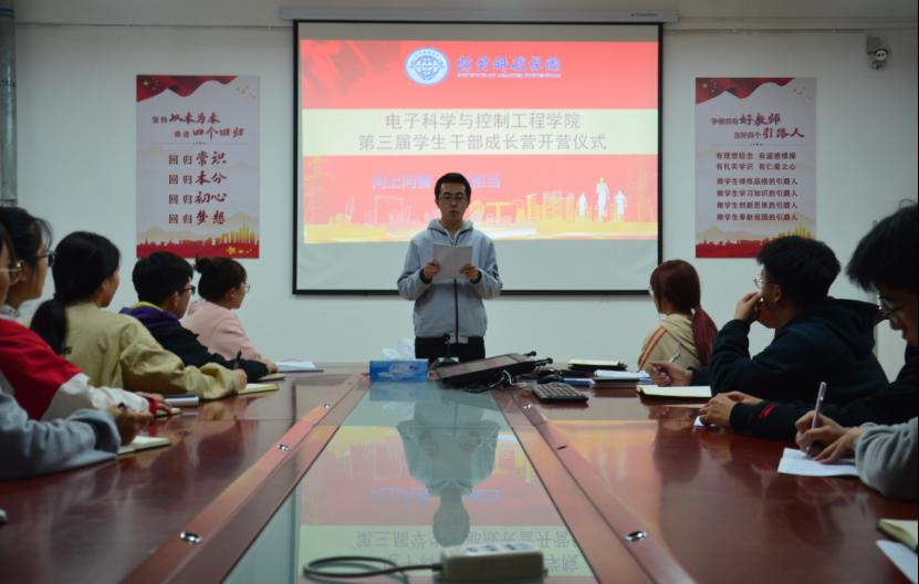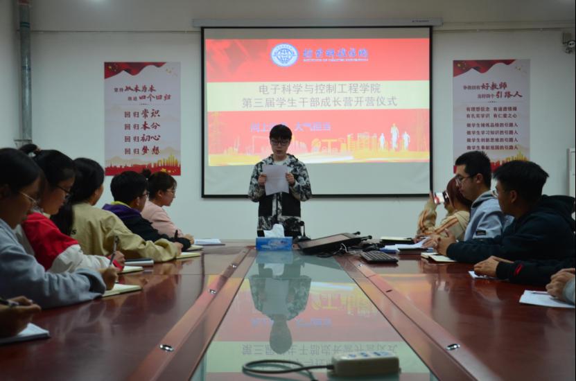 为了进一步提高我院学生干部的综合素质,增强自我教育、自我管理和自我服务的意识,在学院领导的关心和指导下,电子科学与控制工程学院于10月26日晚7:00在长庚楼420会议室召开了第三届学生干部成长营开营仪式,我院党总支书记贾甚杰及29名学生干部参加了本次开营仪式。