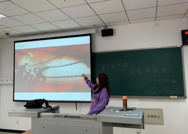 接下来播放准备好的电影视频,视频关于中国共产党发展的历史,端正学生们的思想,坚定不移地同习近平同志为核心的党中央保持高度一致,把深入学习宣传贯彻习近平新时代中国特色社会主义思想摆在首要位置。观影结束后,同学们分享了自己学习党史故事的方式和心得。