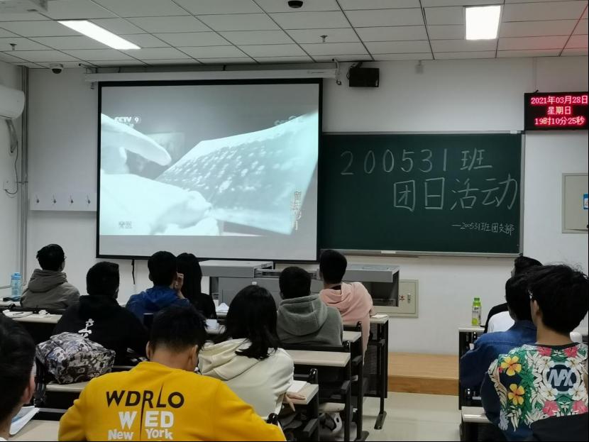 为深入学习贯彻党的十九大、十九届历次全会精神,学习中国共产党的光荣历史,鼓舞人心、凝聚力量。200531班团支部于3月28日晚上七点,在天仪楼506开展“奋斗百年路 ·启航新征程”主题团日活动。由于目前学校疫情防控工作,本次团日活动以线下观看视频的形式开展。参与人员为200531班全体同学。
