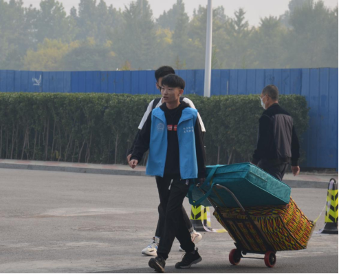 迎新工作如火如荼,到处都是忙碌的身影。接过行李,带领新生回到宿舍,一路谈笑风生,新生们细声地叫着“学长学姐”。安顿好行李后,志愿者们带领着新生前往报到处,志愿者们热情地回答着他们提出的问题,井然有序为新生们办理着报到事宜。随着时间的流逝,报到人流迎来了一波小高潮。
